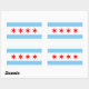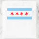 Três listras brancas representam os lados Norte, Oeste e Sul da cidade. A faixa azul mais alta representa o lago Michigan e a ramificação norte do rio Chicago. A faixa azul inferior representa a Zona Sul do rio e o Canal do Excelente. A primeira estrela representa Fort Dearborn. Seus seis pontos simbolizam transporte, trabalho, comércio, finanças, popularidade e saudação. A segunda estrela representa o Excelente Chicago Fire de 1871. Os seus seis pontos representam as virtudes da religião, da educação, da estética, da justiça, da benevolência e do orgulho cívico. A terceira estrela simboliza a exposição colombiana de 1893. Os seus seis pontos representam entidades políticas a que Chicago pertenceu e as bandeiras que sobrevoaram a área: França, Grã-Bretanha Excelente, Virgínia, Território do Noroeste, Território do Indiana e Illinois. A quarta estrela representa a exposição do século do progresso (1933-1934). Os seus pontos referem-se a direitos de gabarito: a Cidade Maior segundo dos Estados Unidos (3° agora), o Latim Motto de Chicago (Urbs em horto - City em um jardim), o Motto "I Will" de Chicago, o Mercado Central Excelente, a Cidade Maravilha e a Cidade da Convenção. — parafraseada na Wikipedia
