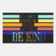 Num mundo onde você pode ser qualquer coisa SER GENTIL. Este é um excelente visual com listras coloridas em preto, amarelo, laranja, vermelho e azul. Seja um trabalhador milagroso e seja a mudança que você quer ver no mundo simplesmente por ser gentil.