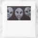 Um desenho a lápis colorido de três Alienígenas de Cinza de ETs contra um céu preto estrelado enfeita adorinha este adesivo!