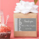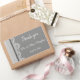 Lace branco e obrigado floral de cinza, seus adesivos. Este design tem um fundo de madeira, corda e um cadarço branco floral ao lado, este design também está disponível como cartão RSVP, convite de casamento e muito mais.