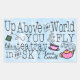 A citação desses bonito e brancos adesivos retangulares para o leitor ávido vem de um poema Lewis Carroll em seu livro, "Alice no País das Maravilhas." O Mad Hatter recita na festa do chá: acima do mundo voa / Como uma bandeja de chá no céu. A design de tipografia do rico apresenta um teacup, um bule de chá e um saco de chá, completos com vapor giratório - todos flutuando sobre um fundo azul claro e turvo do céu. Este é um adesivo bonito para qualquer fã das Aventuras de Alice no País das Maravilhas e da literatura clássica.