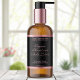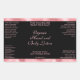 This elegant product label for cosmetic bottles features classic styling with a black background and a faux pink foil border. This label contains space for your product name, business name, product weight, ingredients, instructions, social media, and business address. This label measures 4.5 inches by 2.7 inches (114 mm by 68 mm) and is suitable for bottles with a diameter of 1.5 inches (38 mm) or more and a label height area of at least 3 inches (76 mm). Most 8 oz (240 ml) and 16 oz (480 ml) bottles fit this description (specifically cosmo or bullet and cylinder style bottles), but check the bottle specifications to be sure. This label makes a great choice for packaging beauty products that require larger labels.