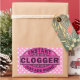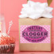 "Clogger Instantâneo: Apenas Adicione Música." Este bonitinho design retangular para dançarinos de entupimento apresenta uma faixa em forma oval em tons de rosa, roxo e branco com notas e listras de música. O fundo é rosa com bolinhas brancas. É um adesivo bonito para o ventilador de dança de entupimento. Veja variações e mais designs de entupimento originais no nosso link de compro ClogDance!