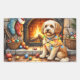 Adesivo Retangular Cockapoo Sitting by Fireplace with Christmas Light