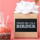 A palavra "passarinho" não te inspira um sentimento de confiança? Claro que sim. Acredite, sou um pássaro. Você pode personalizar este presente engraçado para observadores de pássaros. Mova a design, mude a cor ou o estilo de fundo, adicione o seu próprio texto ou imagens — faça dele o seu!