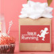 O texto branco diz "Continue a correr" com uma silhueta de um homem correndo com um boné. O texto é tratado com um gradiente ligeiro. Design simples, mas excelente, para joggers, corredores de maratona, etc., para se concentrar na corrida.