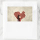 Um coração vermelho esboçado pintado com um lápis sobre um fundo de papel rugoso antigo.