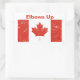 Este é um adesivo vermelho e branco decorado com a bandeira canadense, que diz Elbows Up. É uma forma excelente para qualquer um mostrar apoio ao Canadá!