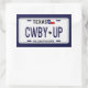 Adesivo Retangular Cowboy! CWBY UP Texas License Plate