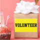 Adesivos voluntários. Personalize texto, estilo e cores para corresponder ao seu evento.