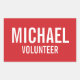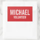 Adesivo Retangular Crachá Red Volunteer com Nome Personalizado