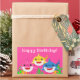Adesivo Retangular Crianças Tubarão Amarelo e Aniversário Familiar