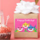 Celebre o aniversário do seu tubarão! Personalizou este adesivo para qualquer necessidade do seu partido ou para rotular qualquer item para crianças na escola. Possui um tubarão amarelo, rosa e azul com fundo colorido. Excelente para quaisquer festas ou festas de tubarões do Mar. Gráficos de Mujka.