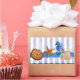 Cor d'água original pintada por Sandra Gale, com peixes-estrela, cavalos-do-mar, tartarugas e conchas sobre um fundo de listras azuis verticais translúcidas. design de excelente para o Verão, casas de praia, bangalôs ou para quem ama a praia, o oceano ou o peixe.