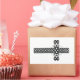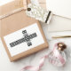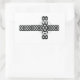 Uma Cruz Celta composta de uma cruz preta e um anel branco, ambos em designs celtas.