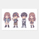 Adesivo Retangular Cute Kawaii Adorable Chibi Kids Sticker Pack of 4