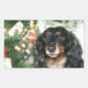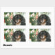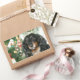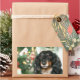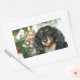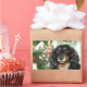 Dachshund em miniatura preto numa vintage que parece um vinheta de Natal retangular de fotografia
