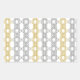Um padrão elegante de formas geométricas prateadas e douradas, ligadas em uma série de serpentinas lineares de renda.