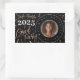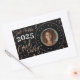 Adicione um toque pessoal e festivo à sua festa de formando com este adesivo personalizado de aspecto em folha de ouro rosa com o nome, a fotografia e o ano de aula do formando. Com um fundo preto em negrito, texto elegante de script e sotaques de folha de alumínio em estilo confetti, este adesivo é perfeito para favoritos para festas, envelopes, sacos de presentes e muito mais. Parte da coleção Foil & Flourish coordena-se lindamente com convites, balões, etiquetas de presentes e decoração. Personalize-o para comemorar seu formando em estilo e amarre todos os detalhes com um final brilhante.