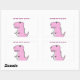 Adesivo Retangular Dinossauro T-Rex, Cartoon Rosa, Bonito E Irritado