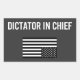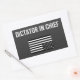 O desmantelamento do governo de Donald Trump no nosso país sem controlos e balanços faz dele um Ditador Chefe. Esta design apresenta um texto branco e uma bandeira americana de cabeça para baixo, negra e branca, que significa que o nosso país está em perigo. Expresse sua resistência a Trump com este design antifascismo! Ele é mostrado aqui em um adesivo de retângulo com uma opção de cor de fundo personalizada. Mais estilos e tamanhos disponíveis.