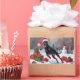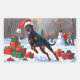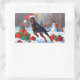 Adesivo Retangular Doberman correndo em neve com chapéu de Natal