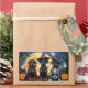 Uma cena divertida de Halloween, com um cachorrinho malicioso a espreitar-se de uma abóbora esculpida, rodeada por vibrações de outono assustadoras. Com um charme viscoso e cores de outono, é o toque perfeito de humor para a estação.