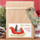 Nessas vinhetas decorativas de Férias, um Cachorro Doberman Pinscher senta em um bonito trenó decorativo vermelho e dourado. Ao lado do cão, os pacotes de presentes são amarrados com arcos coloridos. O texto dourado à direita diz "MERRY CHRISTMAS" e o texto personalizado está vermelho. Perfeito para sua correspondência de Natal ou pacotes de presentes! Há muitas outras imagens e produtos de raças na Dog Village.