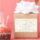Apresentando um elegante guião dourado Obrigado e o nome e a data do texto dourado para personalizar com seus próprios detalhes, com ouro coração confetti. Perfeito para casamentos, chás de panela, chás de fraldas, batismos, festas de noivado, comemorações de aniversário, graduações, encontros de aniversário e outros eventos especiais ao longo do ano! Projetado por Piglet © Pura em www.zazzle.com/purepiglet*.