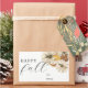 Etiquetas personalizadas de caixa de presentes de Natal com "queda feliz" com elegante design de abóboras brancas de aquarela.