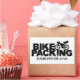 Vinheta de mochila promotora da estrada Tour Divide, de bicicleta de montanha, do Canadá ao México.