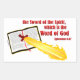 Este é um design cristão legal com uma espada ardente que está saindo de uma bíblia. As palavras "a espada do espírito, que é a palavra de Deus" são escritas a vermelho. Ephesianos 6:17 copyright de GospelGifs