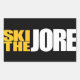 Uma folha de 4 adesivos "Ski" retangulares "Jore" (variante humérica de "Gore") baseados no adesivo "Ski the Face". Corte as seções superior e inferior para obter melhores resultados. Isto produz um adesivo de cerca de 4,5" x 1,4". Se você estiver curioso, a fonte é Impacto (o que mais?) com maior keming.