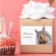 Vista frontal de um esquilo com uma noz na testa, olhando para você hetero. Um animal engraçado e curioso. O esquilo simboliza a praticidade, a necessidade de fazer provisões preliminares. Vinheta retangular. Você pode alterar ou excluir a imagem e o texto do modelo.