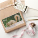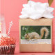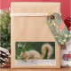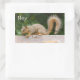 Fotografia do esquilo na cerca com a palavra "hey" (personalizável) escrita acima.