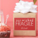 Um vermelho brilhante com texto branco que explica, de várias maneiras, na Nova Inglaterra, que esta é carga precioso: É frágil e perversa.