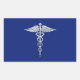 Adesivo Retangular Estilo Cromo Símbolo Médico de Caduceus no Azul Ma