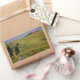Tampão retangular de fotografia de souvenir da estrada branca de gravilha (ou strada bianca) a Terrapille agriturismo com ciprestes ao seu lado à luz da noite em Valdorcia (Vale de Orcia), perto de Pienza, na Toscana, Itália. A estrada também é chamada Gladiator Road porque o filme The Gladiator foi parcialmente gravado aqui.