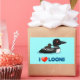 Este adorável design de desenho mostra um leão comum adulto em reproduzindo carregando de plumagem um pintinho para baixo em suas costas. O texto abaixo dos pássaros lê I (coração) Loons. Você pode personalizar este presente! Mova a design, mude a cor ou o estilo do fundo, adicione texto ou imagens — torne-a sua!