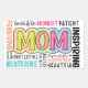 Celebre a mulher incrível que faz tudo isso com este vibrante e sincero adesivo de arte! Perfeito para o Dia das Mães, aniversários, ou só porque, este lindo desenho gráfico mostra palavras que capturam tudo que ela é — forte, amoroso, gentil, inspirador e insubstituível. Quer ela o coloque no laptop, garrafa d'água, diário, ou caneca favorita, este adesivo é um lembrete diário de que ela é apreciada mais do que as palavras podem dizer. Durável, à prova d'água, e cheio de amor — tal como a mãe.