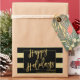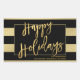 Feliz Natal Devolva Vinhetas. Típica divertida e tendenciosa escrita escrita escrita escrita à mão sobre o popular negro e o fundo das listras de ouro. O efeito de folha de ouro falsa cria uma sofisticada e na moda que seus amigos e familiares certamente se lembram. Correspondência de correio, cartões com fotos e acessórios de correio disponíveis no repositório.