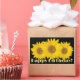 Adesivo Retangular Feliz Aniversário Amarelo Girassóis Pretos