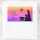 Adorável "Feliz Aniversário Jesus" Os adesivos de Natal apresentam uma bela natividade silhueta com estrelas cintilantes e um arco-íris de cores.