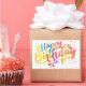 Adesivo Retangular Feliz Aniversário - O arco-íris Cores Aniversário