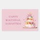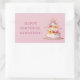 Adesivo Retangular Feliz Aniversário Rosa Colorida