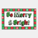 Flocos de neve vermelhos e verdes e os desenhos animados de tipografia de Feliz Be desenharam autocolantes para colocar em embalagens e presentes.