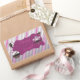Feliz e adesivos retangulares Bright Stripes apresentam sinos jingle à moda antiga e um floco de neve cromo sobre um fundo de faixas lavandas, cor-de-rosa e diagonal cromadas com uma faixa fuchsia com texto rosa que lê Feliz e Brilho. Temos envelopes, cartões de saudação, etiquetas e selos postais!