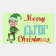 Natal da feliz Elfin. Este Papai noel engraçado e durão gostaria que você tivesse um feliz Natal. Na verdade, ele está insistindo nisso. Esta design retangular mostra um elfo de férias zangado próximo às palavras "Feliz Elfin' Christmas" feito em letras azuis cursivas vermelhas e geladas com capa de neve. O elfo está pulando no ar, clicando em seus calcanhares, enquanto acende um punho e fuma um cigarro. O fundo é verde-claro com manchas brancas de neve. É um design de palavras humorístico para qualquer um que pensa "bah humbug" durante os feriados.