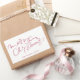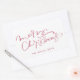 Feliz e Natal Brilhante manuscrito no adesivo retangular vermelho