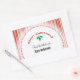 Este adesivo de retângulo apresenta um fundo com padrão de listra vertical vermelha e dourada, um círculo branco acentuado com holly de Natal verde e o texto: MERRY CHRISTMAS da cozinha de: (e texto personalizável para você adicionar seu nome). Este adesivo personalizado é perfeito para selar doces de Natal que você fez como presente para uma pessoa especial.
